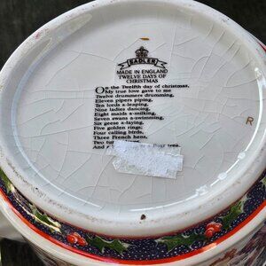 All of the 12 Days are represented around this beautifully whimsical and colourful teapot. The bottom is stamped with the Sadler banner & crown mark and with the lyrics of "The Twelve Days of Christmas".
