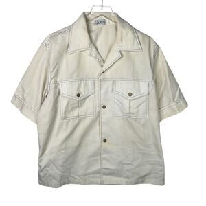 Vintage Safari Short Sleeve Shirt Top Spread Collar FLAW 70s John Weitz Large
