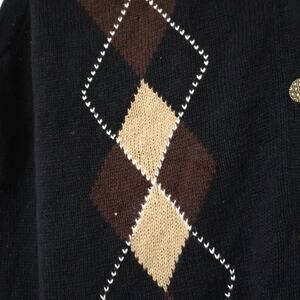 Vintage Sag Harbor Black Brown Argyle Sweater Vest 1X Dark Academia Preppy 80s. Ramie cotton blend.