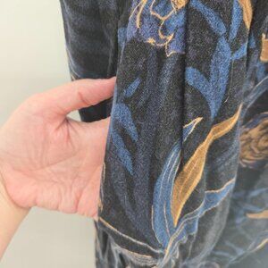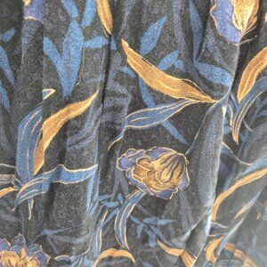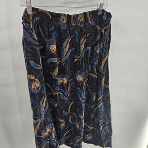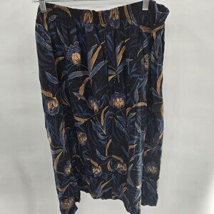 Vintage Sag Harbor Blue Floral Gold Leaf Rayon Midi Skirt 2X