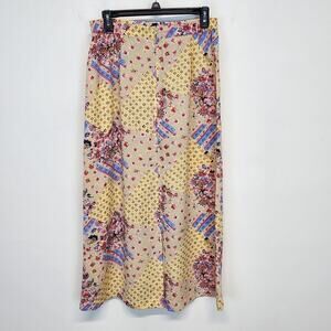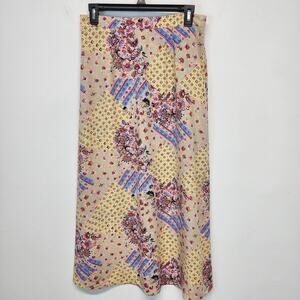 Vintage Sag Harbor Floral Geo Maxi Skirt Size 10 28" Multicolor Back Slit Flowy