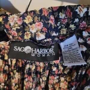 Vintage Sag Harbor Floral Pleated Crinkle Elastic Waist Midi Skirt SZ 1X