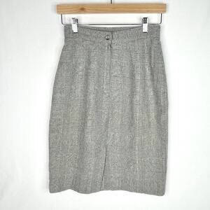 Vintage Sag Harbor Grey Plaid Wool Blend Pencil Skirt