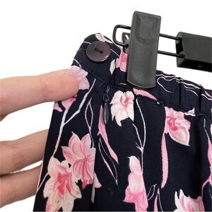 Vintage Sag Harbor Navy Blue with Pink White Floral Print Midi Skirt Size 8
