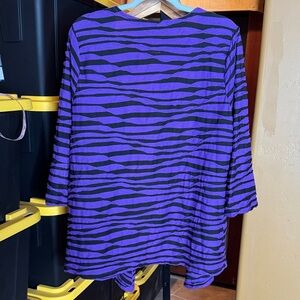 Bold and eye-catching, this Sag Harbor 1X open-front cardigan features a purple and black zebra-inspired stripe with textured wave stitching for added dimension. Lightweight stretch knit makes it perfect for layering in any season and adds a statement pop of color to your outfit.