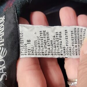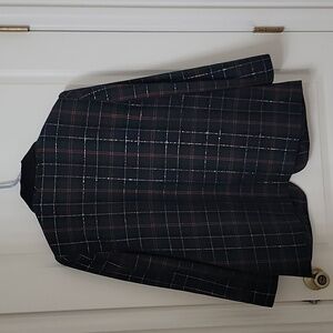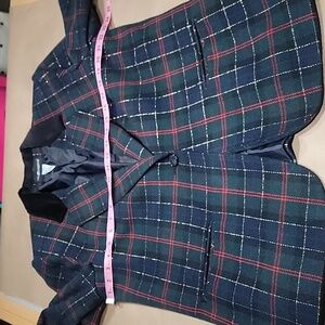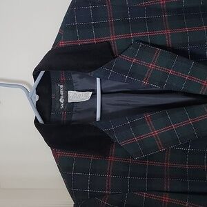 Vintage Sag Harbor Size 16 Green, Red, Blue and Gold Plaid Wool Blend Blazer with Black Velvet Collar. Very Good to Excellent Vintage Condition, No Holes, Rips, Stains or Snags. Front Single Button Closure. Navy Blue with Green, Red, Black and Metallic Gold Tartan Plaid. Black Velvet Collar. Long Sleeves, Front Pockets, Lined. Holiday, Preppy, Business, Equestrian, Plaid, Retro, Vintage. Please refer to measurements in photos to ensure proper fit.
