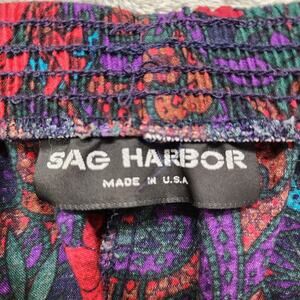 Vintage Sag Harbor Skirt Womens L Black Red Floral Pull On Pleated Midi Pockets Preppy Office Prairie Cottagecore Made in USA