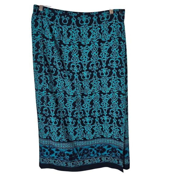 Vintage Sag Harbor Wrap Skirt Womens Size 16P Blue Abstract 90s Midi Preppy Boho