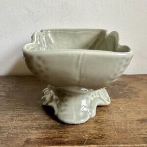 Lovely footed sage green ceramic vase/planter with textured exterior. Perfect for small floral arrangements or plants. In great vintage condition.