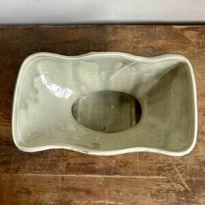 Vintage Sage Green Ceramic Footed Planter | Pedestal Flower Vase | Glazed Vase