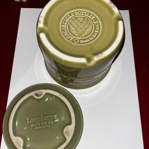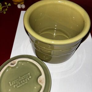 Vintage Sage Green Glazed Ceramic Butter Crock with matching Lid by Longaberger