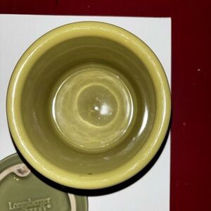 Vintage piece of Longaberger pottery, part of their ‘ivory’ line. Has a band of basket weave texture around 5” crock with matching lipped lid. Perfect for storage or decor. No flaws.