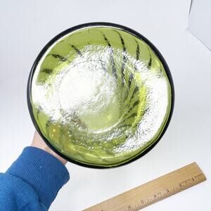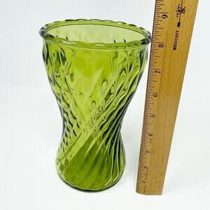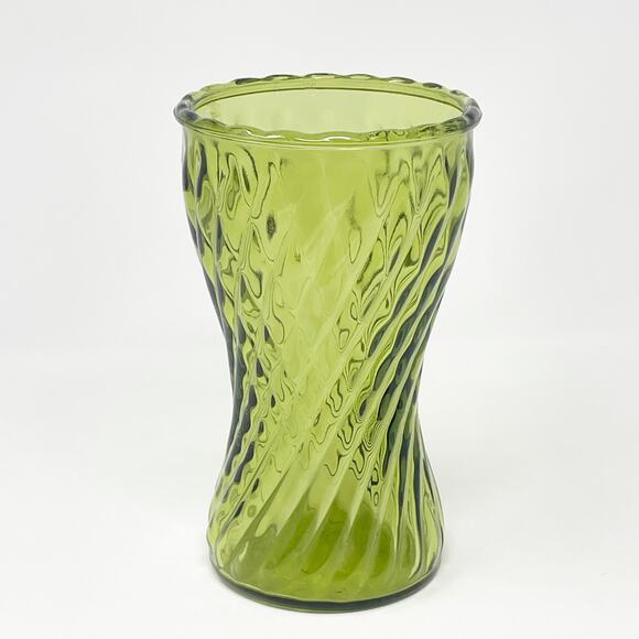 Vintage Sage Green Swirl Glass Vase 8" Tall Scallop Edge Garden Party Florist MCM EUC. In great pre-owned condition with no chips or cracks. Please see all photos. Wide mouth. Packaged with extra care. Collectible. Tablescape.