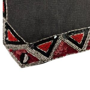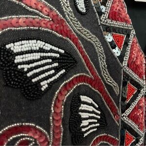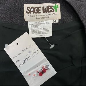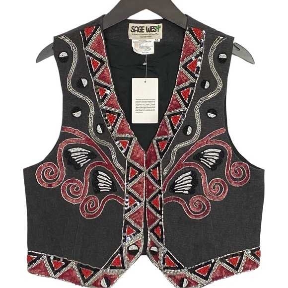 Vintage brand Sage West a division of Sharmark in Las Vegas 1996 produced this beautiful black, red, and white sequined and beaded vest. Ready for a night of dancing, girls night out, rodeo or just cool vest to wear at your leisure. Please see pictures for more details. Measurements taken with item laying flat. Approximate measurements: