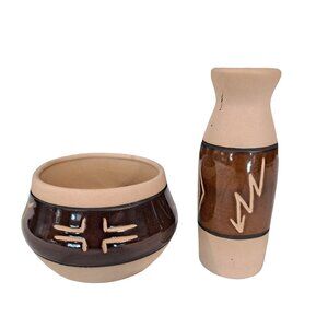 Vintage Saguaro Stoneware Studio Art Pottery Vase And Bowl Native American AZ