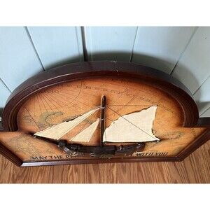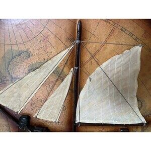 Up for sale is this Vintage Sailboat Framed Map Wooden Mast Cloth Sails Nautical Wall Art 24"x18"