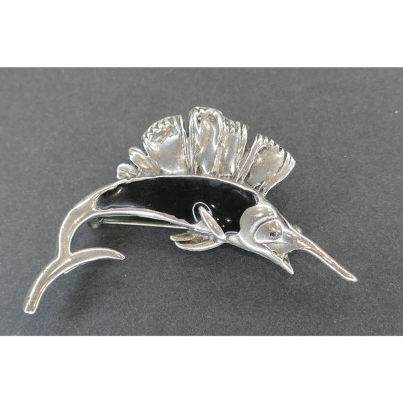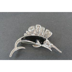Vintage Sailfish Pendant Brooch Sterling Silver & Black Enamel