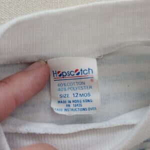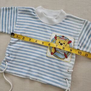 Vintage Hopscotch brand blue and white striped nautical shirt with sailor bear patch! Note some areas of fade. Please see all photos for condition and measurements