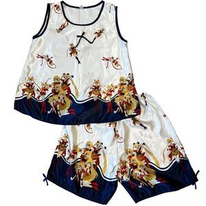 Vintage 2 Piece Sailor Moon Anime Print Satin Pajama Shorts Set