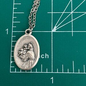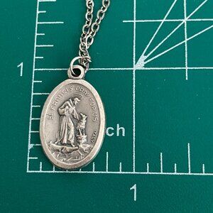 Vintage Saint Anthony Francis Medal Pendant Necklace Italy 24" Stainless Chain