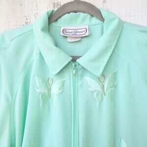 Vintage Saint Germain Paris Jacket Womens M Mint Green Embroidered Butterflies