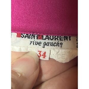The Vintage Saint Laurent Rive Gauche Blouse Top in pink silk is a classic and feminine piece perfect for career wear or casual occasions. With a collared neckline, long sleeves, and button closure, this top exudes a timeless elegance. The 60s-inspired design and handmade craftsmanship add a unique touch to this wardrobe staple. In size 34, this blouse offers a regular fit and is ideal for all seasons, making it a versatile and stylish addition to any woman's collection.