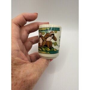 The Vintage Sake Cup "Three Wise Monkeys" is a small, round ceramic and porcelain cup featuring a playful design of monkeys. This unique cup, originating from Japan, showcases a multicolor pattern and a theme of wise monkeys, adding a touch of vintage charm to any table setting. Whether enjoyed hot or cold, this original cup is sure to bring a quaint and traditional feel to your kitchen or home collection.