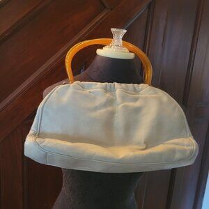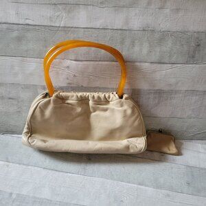 Vintage Saks Fifth Avenue Beige Leather Handbag With Bakelite Handles & Coin Pur