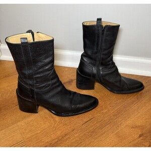 Vintage Saks Fifth Avenue Black Leather Boots 7.5 Made in Italy Vero Cuoio Heel