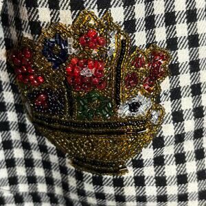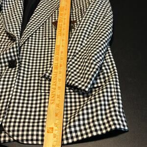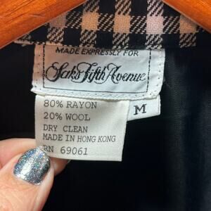 Vintage Saks Fifth Avenue Blazer M Wool Rayon Gingham Check Crest Patch 80s 90s