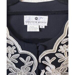 Vintage Saks Fifth Avenue Brocade Black and White Short Jacket Size 8 Old Money