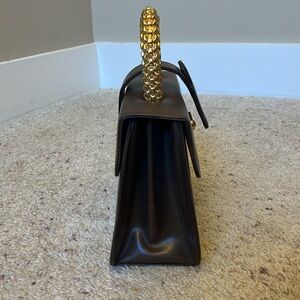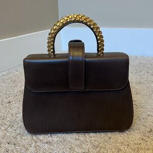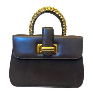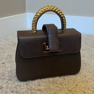 Vintage Saks Fifth Avenue | Chocolate Brown Leather Handbag with Gold Hardware