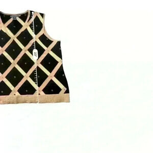 Vintage Saks Fifth Avenue Ladies Cashmere Sweater Vest Brown Black Lattice M