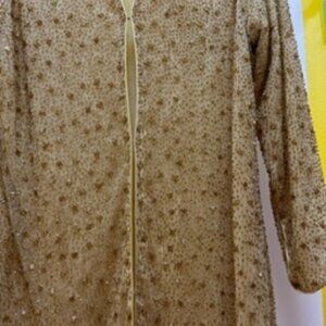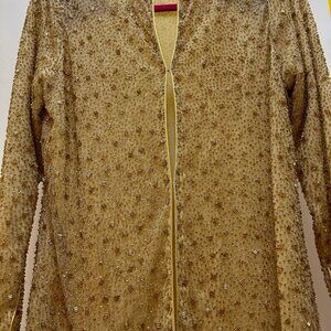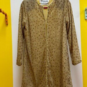 Vintage Saks Fifth Avenue Richilene Gold Beaded Long Dress Jacket Size 10