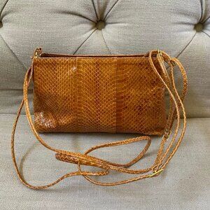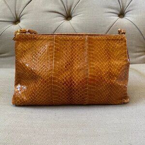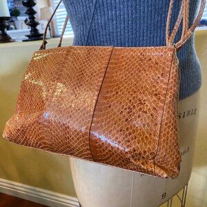 Vintage Saks Fifth Avenue Snakeskin Shoulder Bag Cross Body Purse Brown Tan