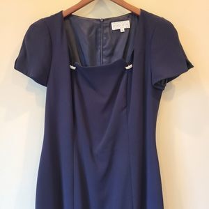 Vintage Saks Fifth Avenue Women's Sheath Dress Navy Size 10 Square Neck Career