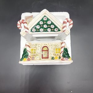 Vintage Sakura Debbie Mumm Gingerbread House Ceramic Canister Jar Sweet Gingerland 5.5 x 5.5 x 4 Ceramic with original box NO TEA