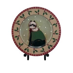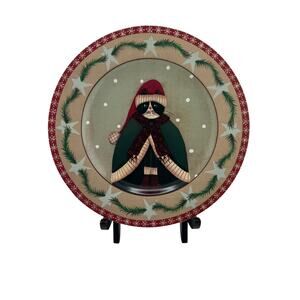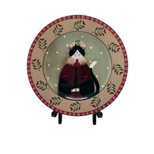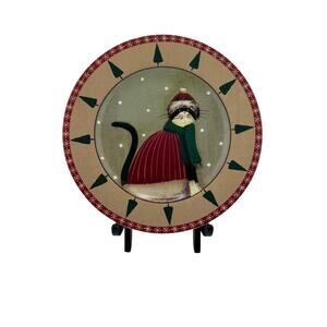 Vintage Sakura Fiddlestix Holiday Cats Stoneware Salad Plates Set of 4