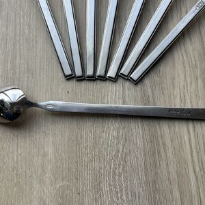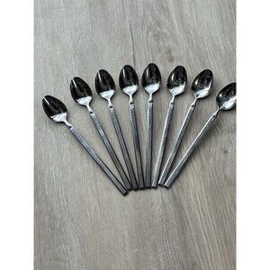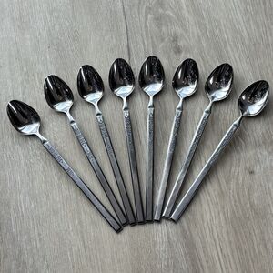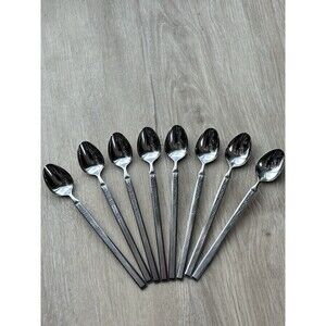 Vintage Salem Stainless Scrolls Iced Tea Spoons 7.5" Set of 8 Japan MCM Rare