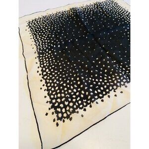 Vintage Sally Gee Silk Hand Rolled Scarf Black & White Abstract Print 16x15.5