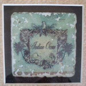 Vintage Sally Ray Cairns Publishing Framed Shadowbox Art Tile - Indian Ocean
