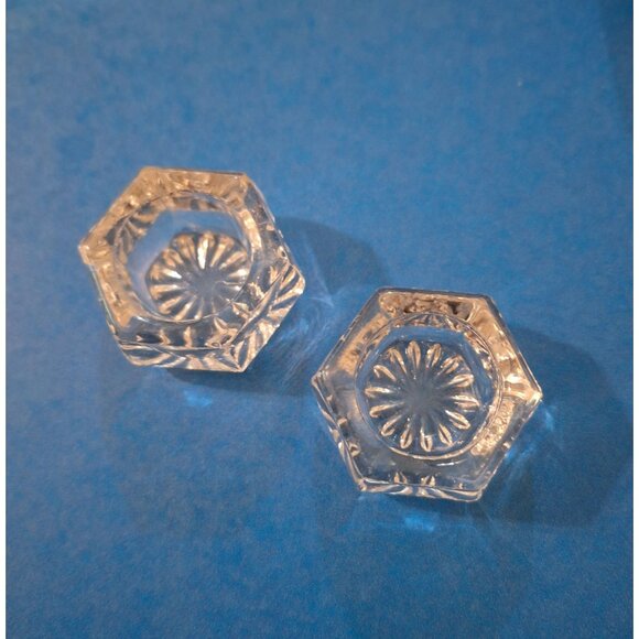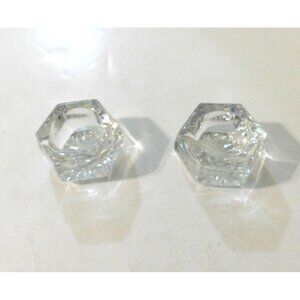 Vintage Salt Cellars Set Of 2 Hexagon Shape Clear Crystal Glass 1.5" Diameter
