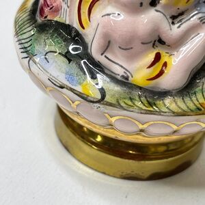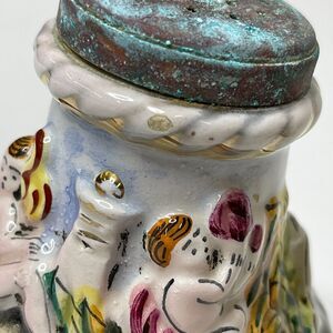 Vintage Salt Shaker And Pepper Grinder Set Porcelain and Brass Made In Italy