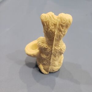 This wonderful dog figurine is an estate sale find! During the 1940s and 1950s, salt stone figurines were very popular, which makes me think they may be from that period. He's so cute with is paw delicately balanced on the handle of the basket at his feet. He appears to be encouraging you to fill it with his favorite dog biscuits!