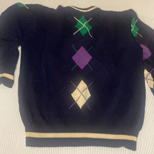 Vintage Salty Dog Mens Golf Sweater Size Large Argyle Hand Knit Navy Gant Preppy