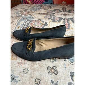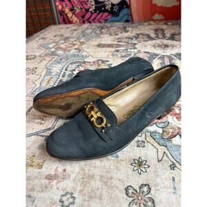 Vintage Salvatore Farragamo Suede Brass Hardware Slip On Loafers Women's 8
