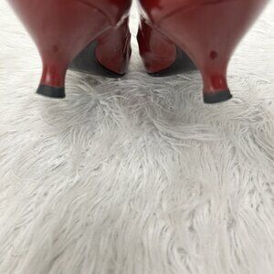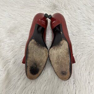 Vintage Salvatore Ferragamo 1980’s Red Vara Patent Bow Pump Kitten Heel Size 9AA