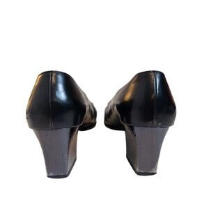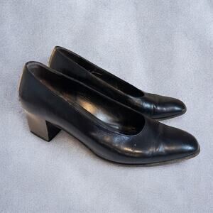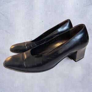 Vintage Salvatore Ferragamo Black Leather Classic Block Heel Pumps Size 8