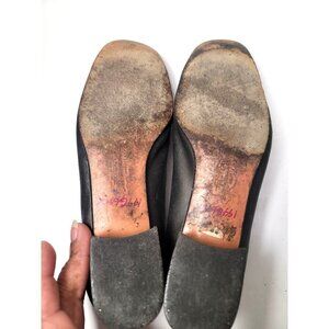 These vintage Salvatore Ferragamo heels exude timeless elegance with their sleek black leather and distinctive bow detail. The textured toe design adds a sophisticated touch, while the moderate heel height ensures comfort and style. Ideal for professional settings, these shoes offer both aesthetic appeal and durability.