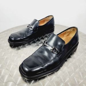 Vintage Salvatore Ferragamo Black Leather Slip on Moccasin Gancini Horsebit 8.5D